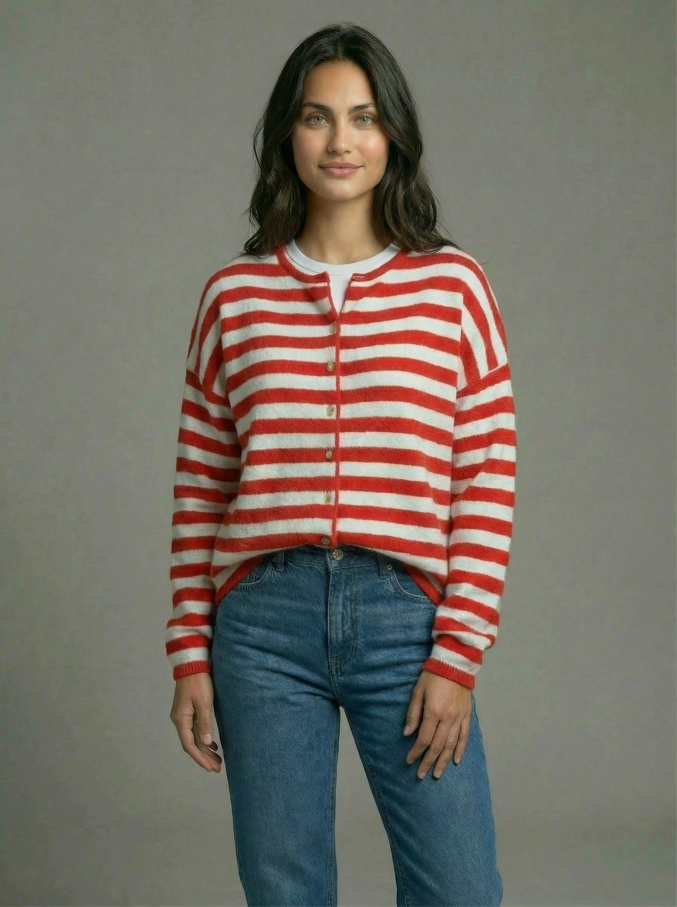Make a bold statement with the Bennet Striped Cardigan by Le Lis! This eye-catching red and white striped long sleeve cardigan adds a playful pop of color and classic charm to any look. Perfect for layering over your favorite tops or dresses, the Bennet Cardigan brings warmth, comfort, and standout style to your wardrobe. Brighten up your outfits with this must-have piece for every season!